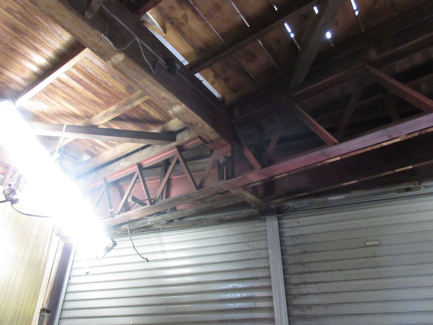 正面の全面ガラスだった所にはやはり鉄骨の合成梁が入っていた。木造の店舗ではこのような補強が良くあるけれども、思ったよりも大きくて天井高の修正をしなくては。
