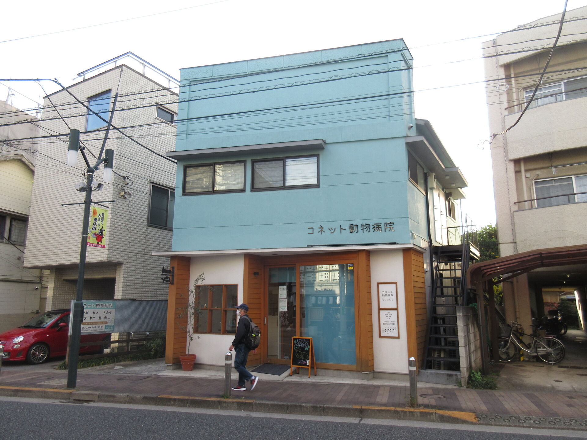 約束の時間より少し早めに行ってコネット動物病院にご挨拶。このご時世だが患者さんは減っていないようで、なによりだ。病院もとてもきれいに使われていて、設計者としては嬉しいかぎり。外の木部は足元が少し黒ずんできているものの、思ったよりは色褪せたりしてなくてよい感じである。横の通路スペースに庇を付けて外待合になるような場所がよいとのこと。密を避ける手段としてこういった要望が確実に増えている。