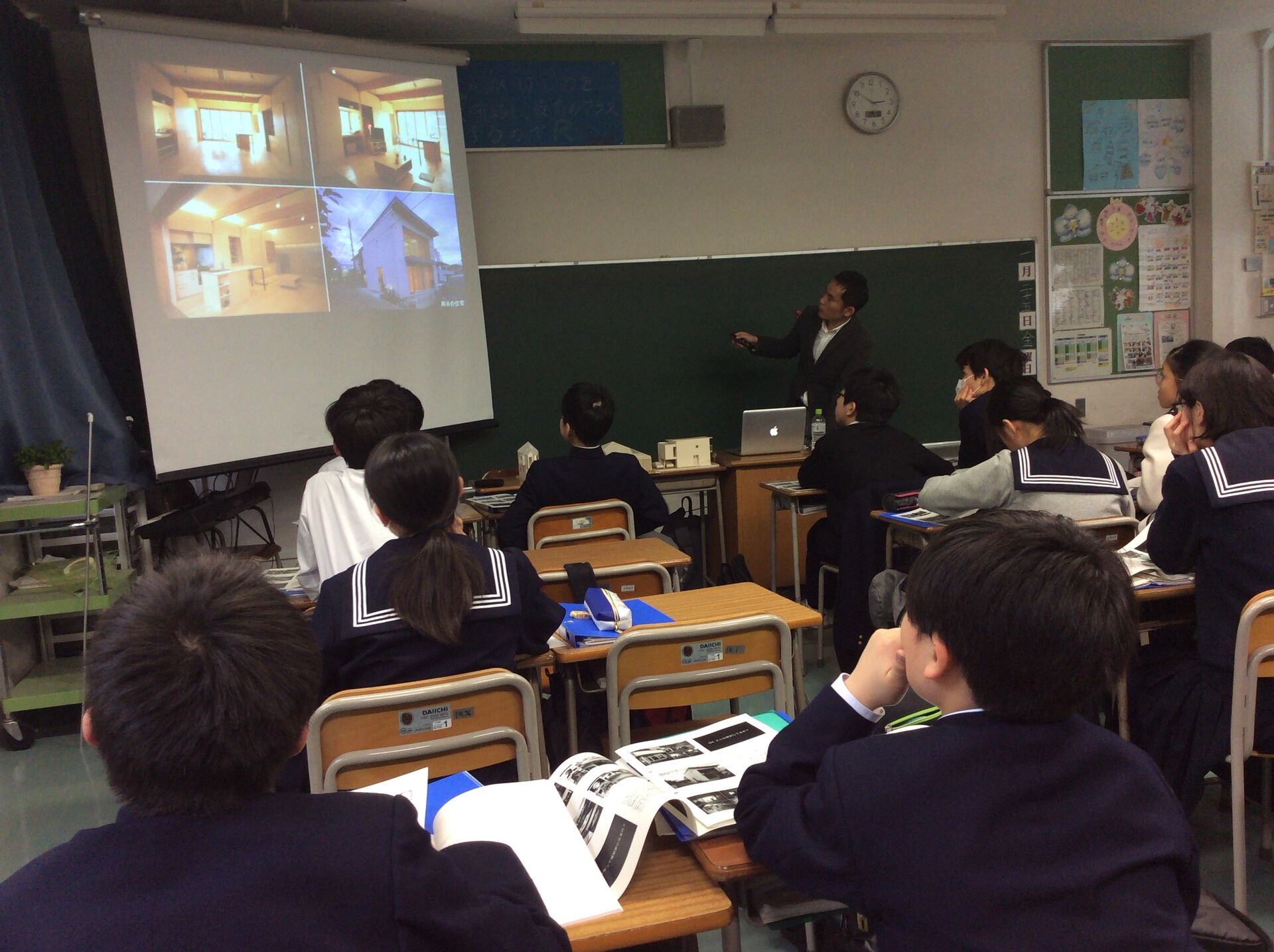 大学時代の後輩に頼まれ、某中学校1年生の授業で講師として話をしてきた。「課題発掘セミナー」と言って外部の社会人に様々な仕事について話を聞くという企画だ。あまりこういう経験はなかったが、「建築家という仕事」というタイトルでこの仕事の魅力ややりがいを、自分の生い立ちなども交えながら話をした。
