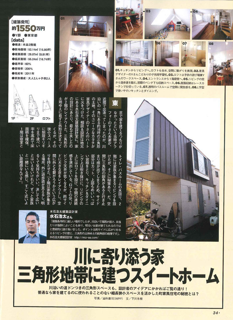 「堀ノ内の住宅」がモノ・マガジンという情報誌に掲載された。狭小住宅特集ということで、もう8何前の物件だが相変わらず問い合わせが多いのはありがたいこと。その度に取材を受けて建て主とともに当時を振り返るのは苦労するものの感慨深い。
