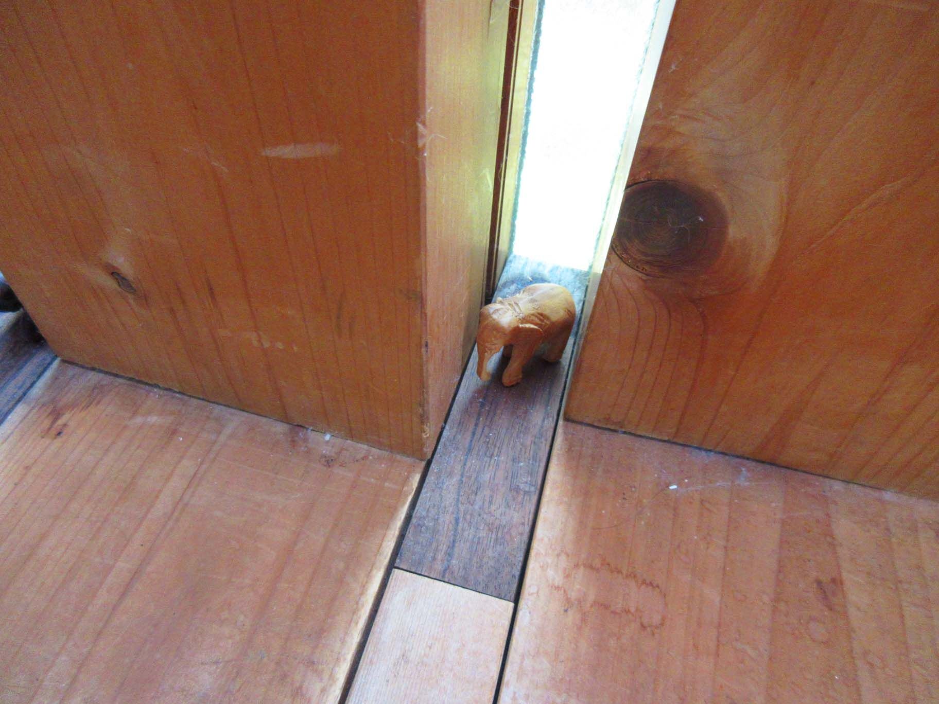 ご自身で設計され長年住まわれた家の増築部分がこの「繋柱の家」で、4寸角のヒノキ材を細かいピッチで並べること、ほぼそのことだけで成立している家と言っていい。4寸角材は柱・梁構造の軸が基本となり、それらを連続させることで面としての壁となり天井となっている。驚いたことに土台の角材も現しで連続させ床になっているため、四周をヒノキ材にぐるりと包み込まれることになる。