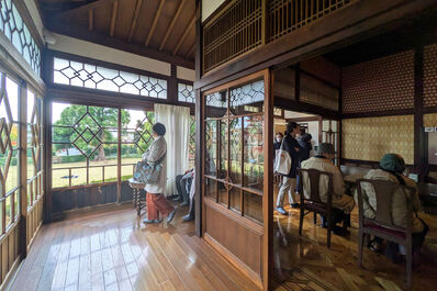 まずはちょうど1年前に一般公開となった荻外荘へ。首相も務めた政治家・近衛文麿の邸宅として知られ、重要な政治の会合が行われた舞台ともなり、終戦時近衛はこの邸宅で自死している。建築家・伊東忠太の設計で、杉並区が手に入れ復元改修工事が行われた。建物の半分は豊島区に移築されていたようで、それを再移築して戻すという大掛かりの作業も含む。